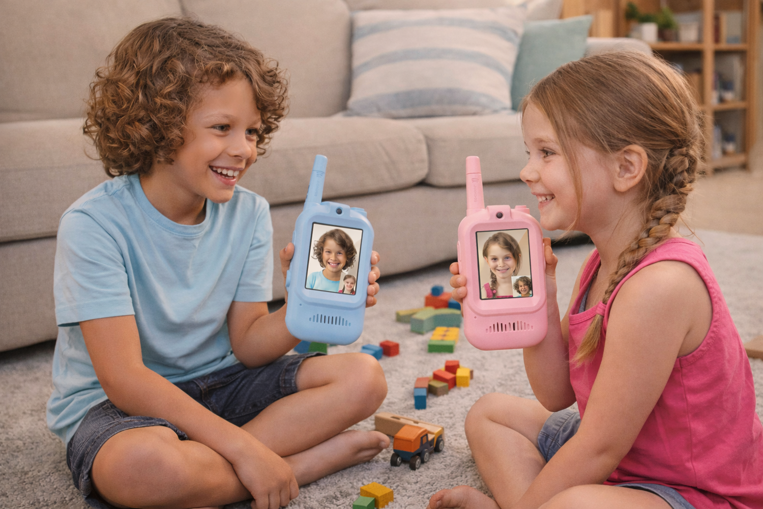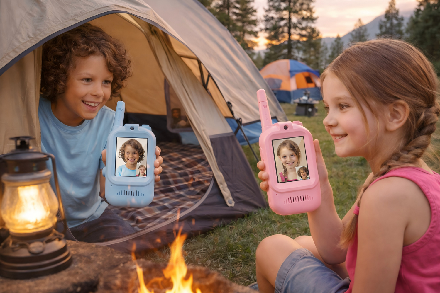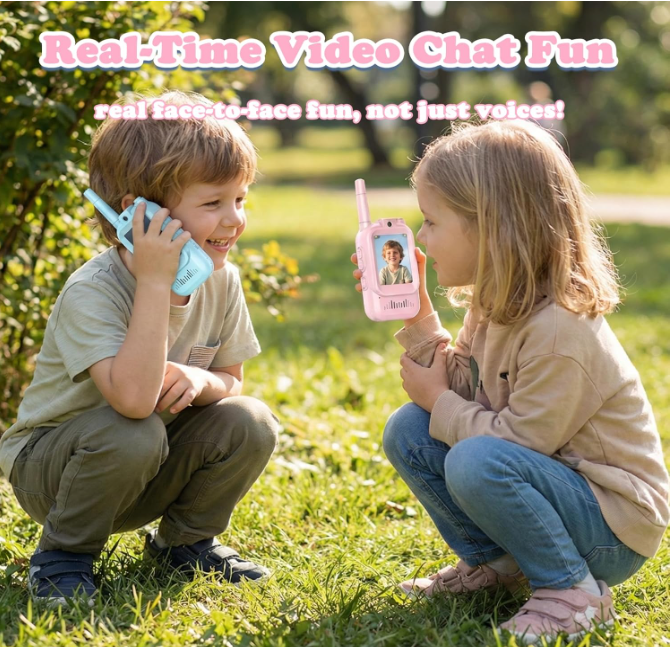 No Wi-Fi or App is required! These walkie talkies function just like traditional ones but with a built-in camera and screen. They use a secure, direct digital frequency to transmit video and audio between the two units. This means your kids can play anywhere—camping, in the backyard, or at the park—without needing an internet connection or a smartphone.
